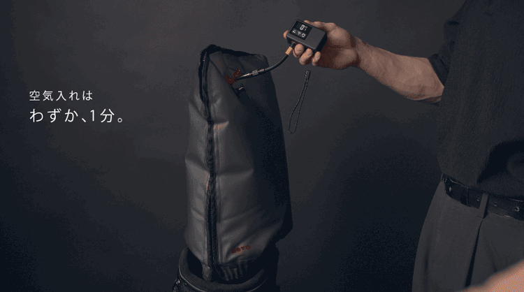 オキシバッグ(OXYBAG)とは、ゴルフバッグの内部に装着し、空気の力でクラブを包み込むクラブ保護用エアバッグです。